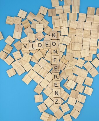Aus Buchstaben wurde das Wort "Videokonferenz" gelegt. Es gelten die Nutzungsbedingungen der Mediothek und Pixiothek.