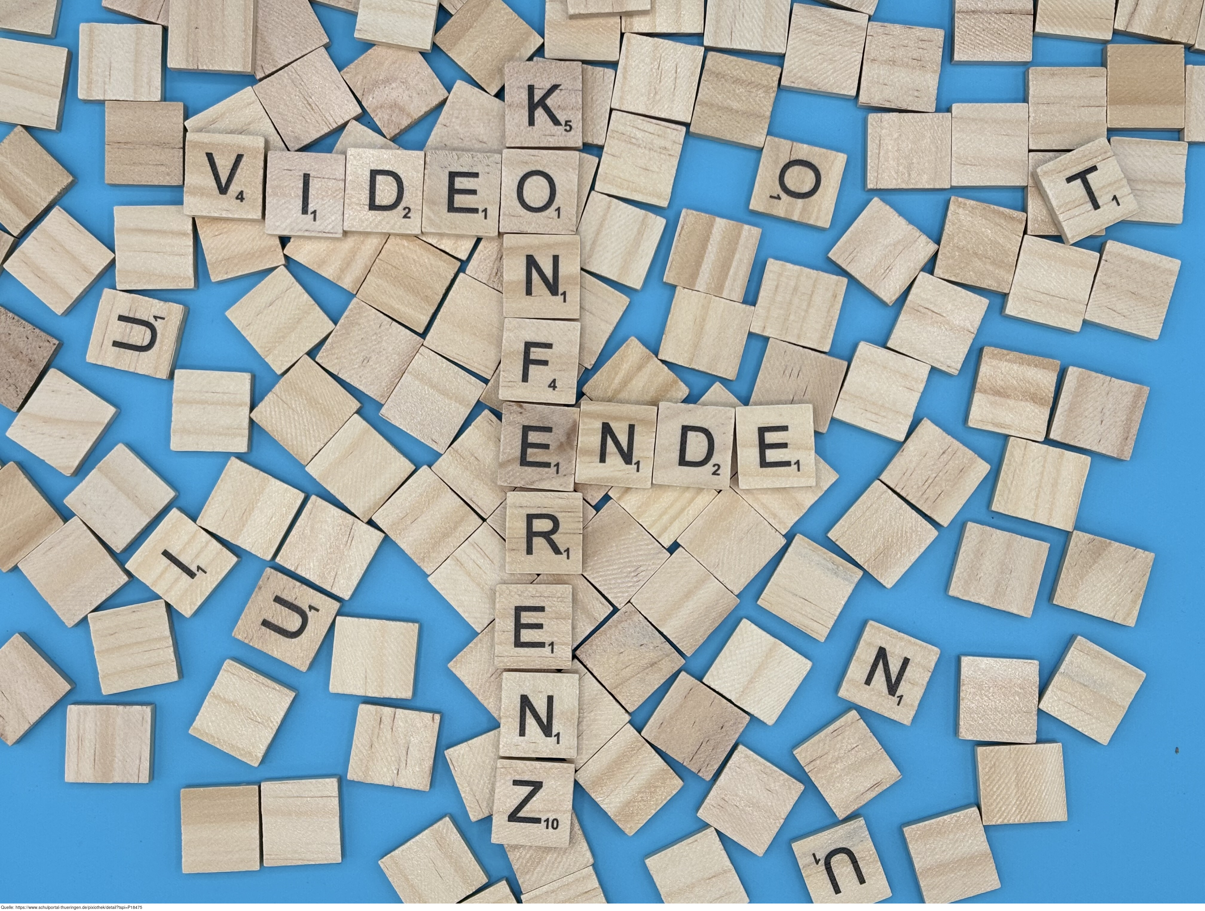 Aus Buchstaben wurden die Worte "Videokonferenz" und "Ende" gelegt. Es gelten die Nutzungsbedingungen der Mediothek und Pixiothek.