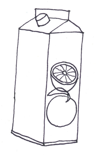 Das Bild zeigt eine gezeichnete Packung Orangensaft (s/w). Es gehört zur Serie "Ernährungspyramide zum Basteln und Gestalten" und findet u.a. im gleichnamigen Lernobjekt unter https://www.schulportal-thueringen.de/web/guest/media/detail?tspi=18517 Verwendung. Es gelten die Nutzungsbedingungen der Mediothek und Pixiothek.