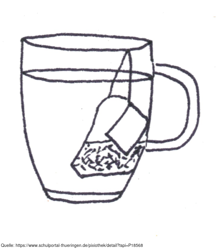 Das Bild zeigt ein gezeichnetes Teeglas mit Teebeutel (s/w). Es gehört zur Serie "Ernährungspyramide zum Basteln und Gestalten" und findet u.a. im gleichnamigen Lernobjekt unter https://www.schulportal-thueringen.de/web/guest/media/detail?tspi=18517 Verwendung. Es gelten die Nutzungsbedingungen der Mediothek und Pixiothek.