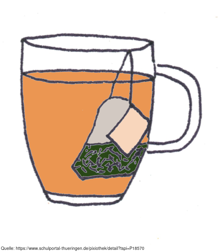 Das Bild zeigt eine gezeichnetes Teeglas mit Teebeutel (farbig). Es gehört zur Serie "Ernährungspyramide zum Basteln und Gestalten" und findet u.a. im gleichnamigen Lernobjekt unter https://www.schulportal-thueringen.de/web/guest/media/detail?tspi=18517 Verwendung. Es gelten die Nutzungsbedingungen der Mediothek und Pixiothek.
