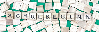 Aus Buchstaben wurde der Begriff „Schulbeginn" gelegt. Es gelten die Nutzungsbedingungen der Mediothek und Pixiothek.