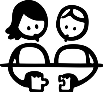 Die Zeichnung zeigt eine symbolhafte Szene zur Darstellung von Partnerarbeit. Das Bild ist unter CC0 lizenziert und kann somit frei verwendet werden. Es ist neben weiteren Bildern auch hier zu finden: https://cocomaterial.com