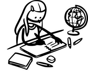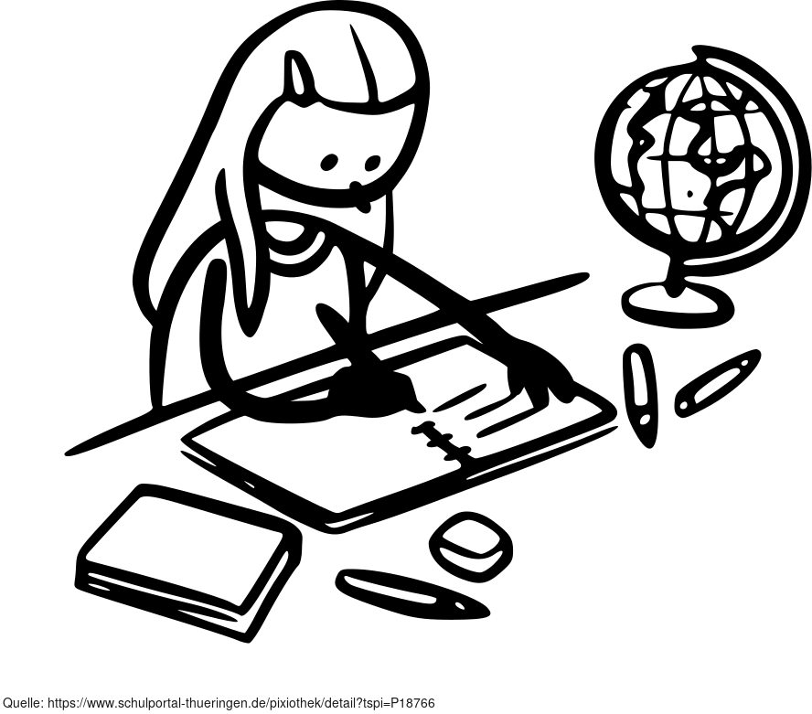 Die Zeichnung zeigt eine Schülerin. Das Bild ist unter CC0 lizenziert und kann somit frei verwendet werden. Es ist neben weiteren Bildern auch hier zu finden: https://cocomaterial.com