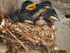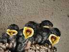 Das Foto gehört zur Serie "Schwalbenfreundliches Haus". Es zeigt junge Rauchschwalben. Das Nest befindet sich in einer Scheune, die für Vögel und Fledermäuse einige offene Durchflugsmöglichkeiten bereithält. Es gelten die Nutzungsbedingungen der Mediothek und Pixiothek.