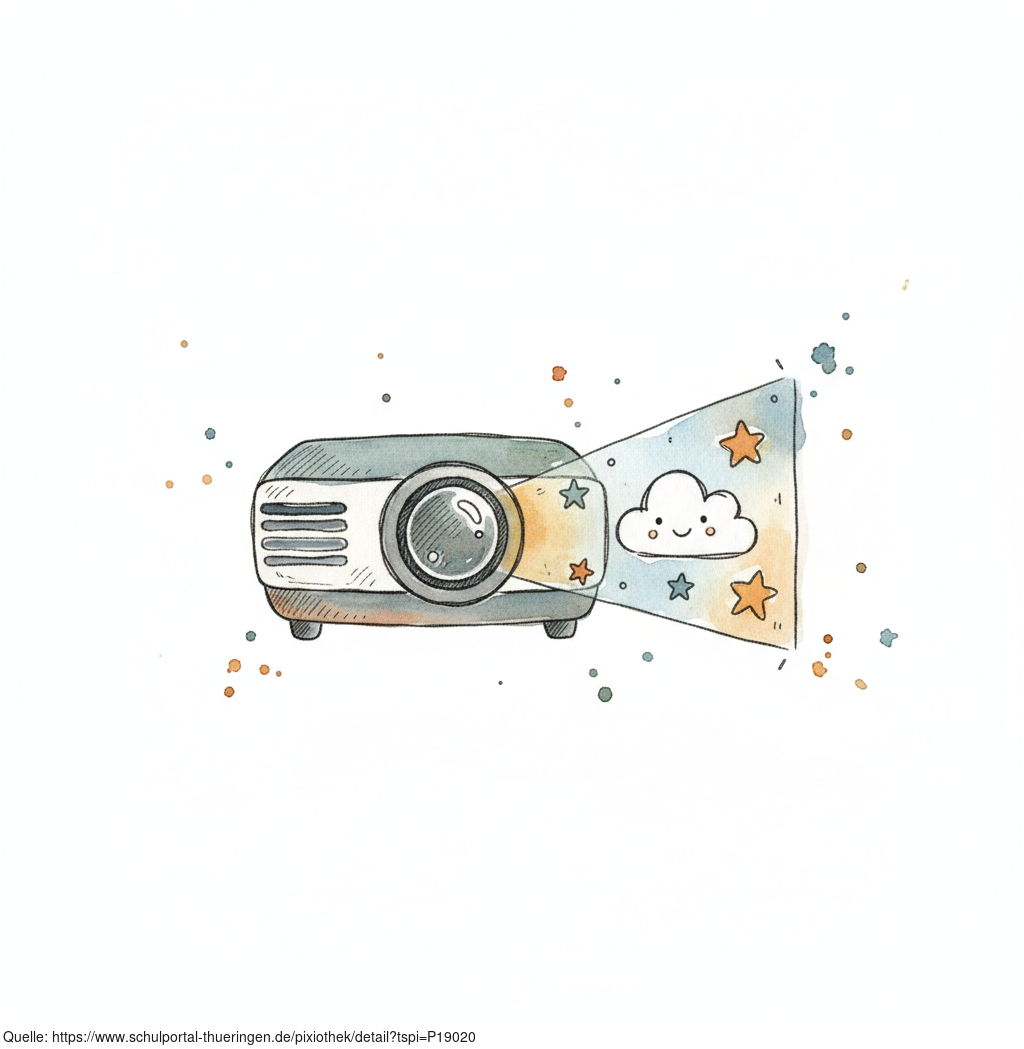 Das Bild zeigt einen Beamer bzw. Projektor mit einem blauen Lichtstrahl. Das Bild wurde mittels einer KI (Gemini) erstellt und ist unter CC0 lizenziert. Weitere Bilder aus Herrn Emrich-Försters Bild-Archiv findet man hier: https://pix.foerster.rocks/