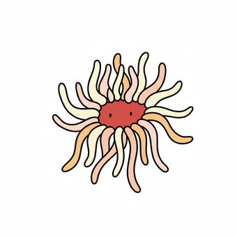 Das Bild zeigt eine gezeichnete Anemone, Seeanemone. Das Bild wurde mittels einer KI (Gemini) erstellt und ist unter CC0 lizenziert. Weitere Bilder aus Herrn Emrich-Försters Bild-Archiv findet man hier: https://pix.foerster.rocks/