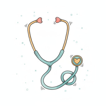 Das Bild zeigt ein gezeichnetes Stethoskop. Das Bild wurde mittels einer KI (Gemini) erstellt und ist unter CC0 lizenziert. Weitere Bilder aus Herrn Emrich-Försters Bild-Archiv findet man hier: https://pix.foerster.rocks​​​​​/