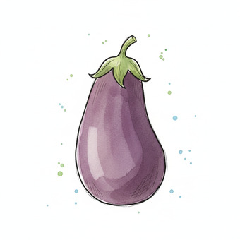 Das Bild zeigt eine gezeichnete Aubergine. Das Bild wurde mittels einer KI (Gemini) erstellt und ist unter CC0 lizenziert. Weitere Bilder aus Herrn Emrich-Försters Bild-Archiv findet man hier: https://pix.foerster.rocks/