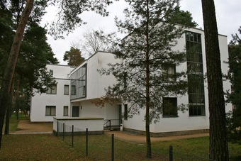 Das Meisterhaus von Gropius ist als Nachbau wiederhergestellt worden, aber lediglich als Hülle, die das Original andeutet. Im Inneren befindet sich eine Ausstellung. Analog wurde der Teil Moholy-Nagy des Doppelhauses Moholy-Nagy/Feininger wieder errichtet, um das Gesamtensemble deutlich zu machen. Auch dieses zweite Haus ist keine Rekonstruktion im eigentlichen Sinne, sondern eine Hülle, die als Eindruckgeber fungiert.