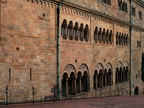 Abgebildet ist ein Blick auf die Kemenate und den Wehrgang.