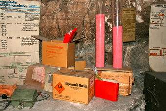 Das Foto gehört zur Serie "Salzbergwerk". Es zeigt Sprengmittel im Erlebnisbergwerk Merkers. Es gelten die Nutzungsbedingungen der Mediothek und Pixiothek.