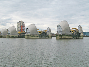 Das Foto gehört zur Serie London 2016. Es zeigt "The Thames Barrier", eines der größten Sturmflutsperrwerke der Welt. Es gelten die Nutzungsbedingungen der Mediothek und Pixiothek.