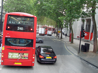 Das Foto gehört zur Serie London 2016. Es zeigt Straßenverkehr (traffic) in London. Es gelten die Nutzungsbedingungen der Mediothek und Pixiothek.