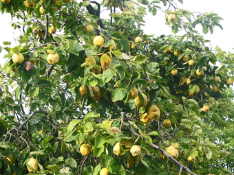 Das Foto gehört zur Serie Obstbäume. Es zeigt einen Quittenbaum mit Früchten. Es gelten die Nutzungsbedingungen der Mediothek und Pixiothek.