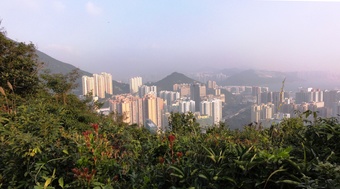 Das Foto gehört zur Serie "Hong Kong Trail". Es zeigt den Blick auf die Hochhäuser von Hong Kong vom Weg des Hong Kong Trails. Die ersten 200 Höhenmeter sind absolviert. Es gelten die Nutzungsbedingungen der Mediothek und Pixiothek.