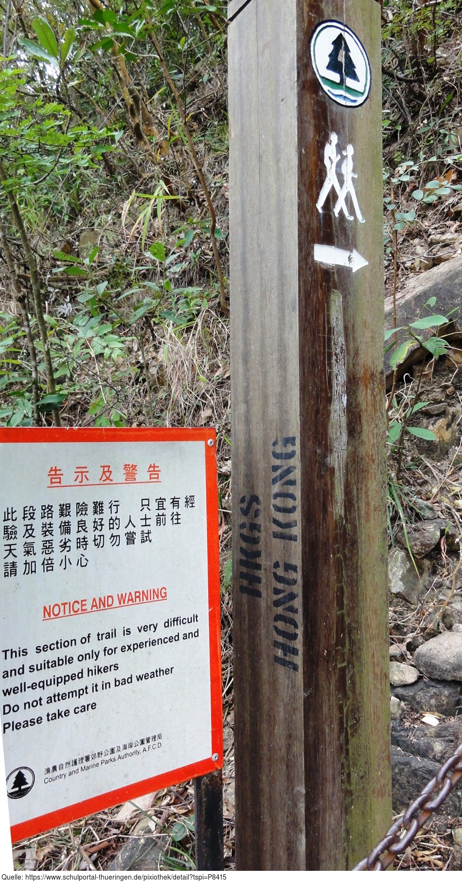 Das Foto gehört zur Serie "Hong Kong Trail". Es zeigt ein Hinweis- und Warnschild bei Aberdeen Harbour. Es gelten die Nutzungsbedingungen der Mediothek und Pixiothek.
