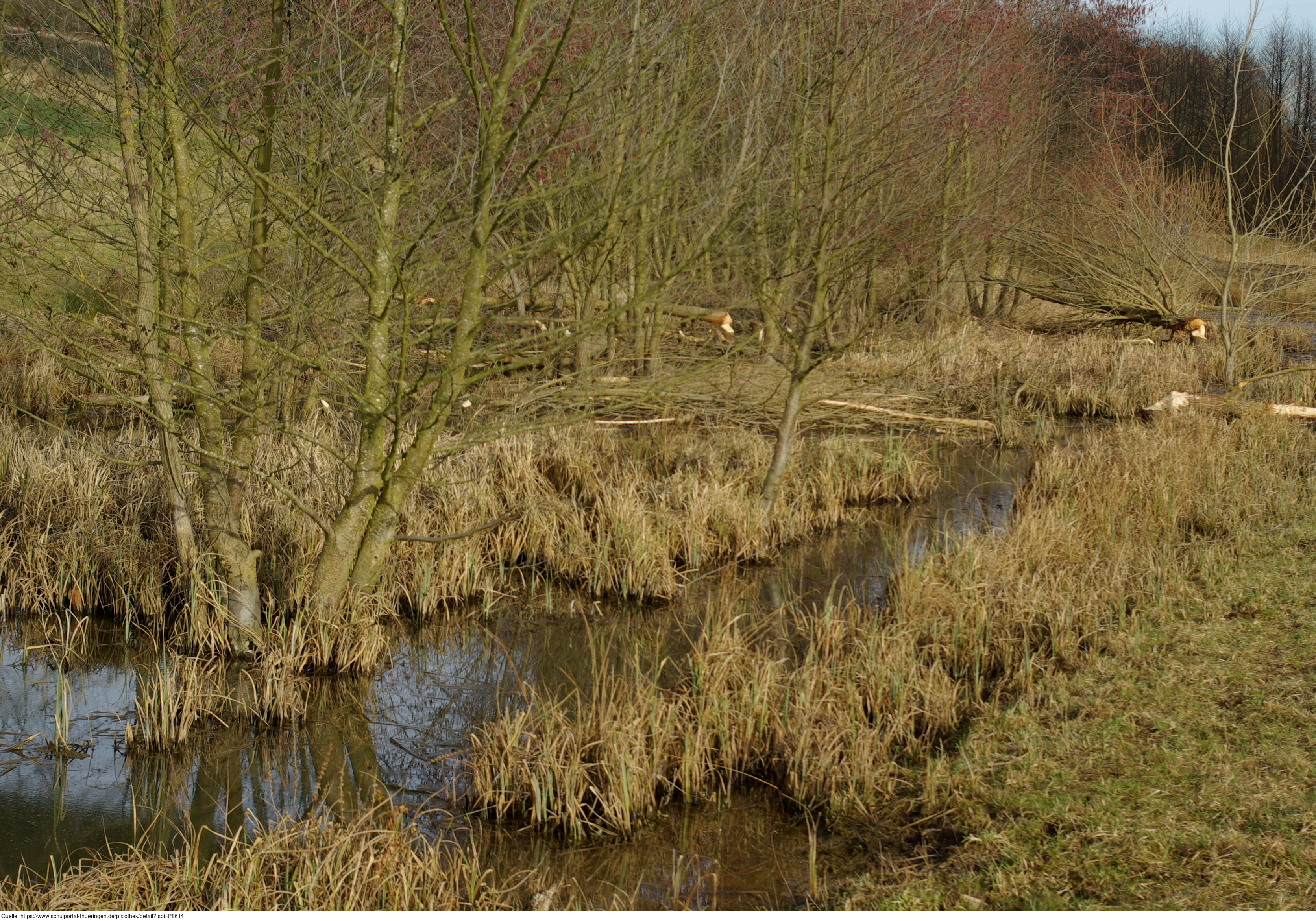 Das Foto gehört zur Serie "Wald". Es zeigt einen Bach. Biber haben Bäume gefällt. Das Bild ist unter CC0 lizenziert und kann somit frei verwendet werden.