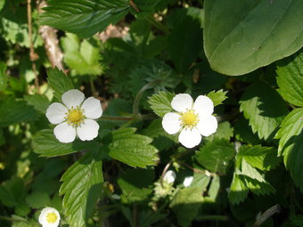 Das Foto gehört zur Serie "Blüten von Obstpflanzen". Es zeigt Blüten der Wald-Erdbeere (Fragaria vesca), auch Monatserdbeere genannt. Das Bild ist unter CC0 lizenziert und kann somit frei verwendet werden.