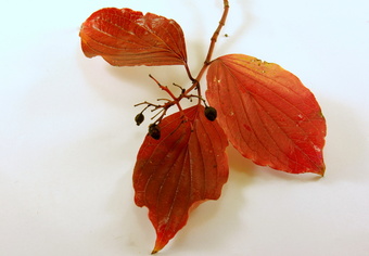 Das Foto zeigt Blätter einer Hartriegelpflanze (Cornus), auch Hornstrauch genannt, im Herbst. Das Bild ist unter CC0 lizenziert und kann somit frei verwendet werden.