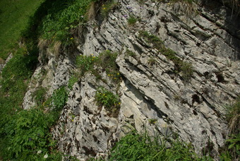 Das Bild gehört zur Serie "Alpen". Es zeigt eine Gesteinsformation, die die Gebirgsbildung (Orogenese) durch tektonische Vorgänge veranschaulicht. Das Bild ist unter CC0 lizenziert und kann somit frei verwendet werden.