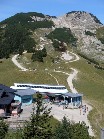 Das Bild gehört zur Serie "Alpen". Es zeigt eine Seilbahnstation im Gebirge. Das Bild ist unter CC0 lizenziert und kann somit frei verwendet werden.