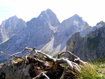 Das Bild gehört zur Serie "Alpen". Es zeigt den Blick auf Berggipfel im Tannheimer Tal (österreichische Bundesland Tirol). Das Bild ist unter CC0 lizenziert und kann somit frei verwendet werden.