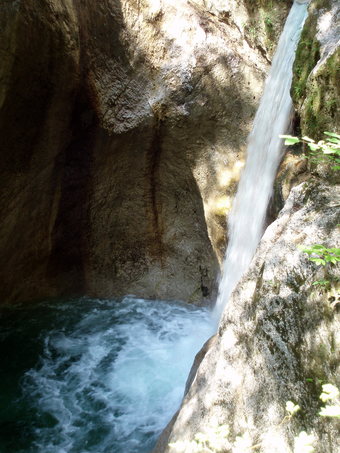 Das Bild gehört zur Serie "Alpen". Es zeigt einen Wasserfall in einer Gebirgsklamm. Das Bild ist unter CC0 lizenziert und kann somit frei verwendet werden.