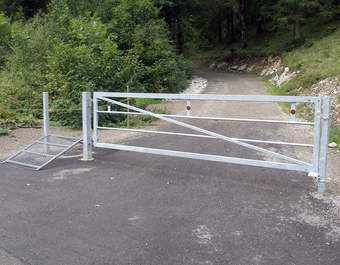 Das Bild zeigt ein verzinktes Tor vor einem Waldweg. Ein Wildgitter ist für Wanderer begehbar, verhindert aber das Passieren von Wild (Rehwild, Damwild, ...). Das Bild ist unter CC0 lizenziert und kann somit frei verwendet werden.
