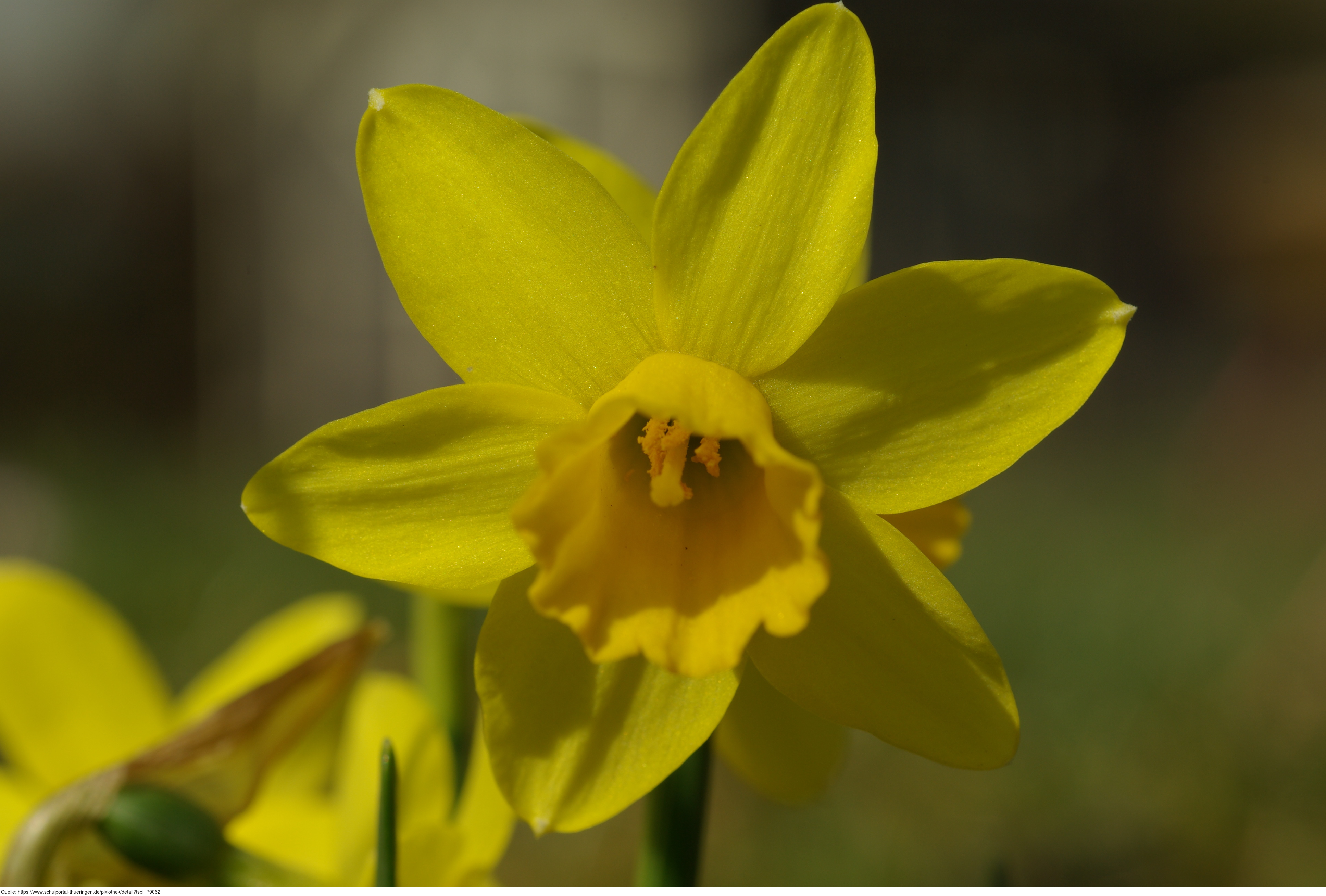 Das Foto gehört zur Serie "Blüten von Blumen". Es zeigt die Blüte der Pflanzengattung Narzissen (Narcissus). Die Art Narcissus pseudonarcissus wird oft auch Osterglocke genannt. Das Bild ist unter CC0 lizenziert und kann somit frei verwendet werden.