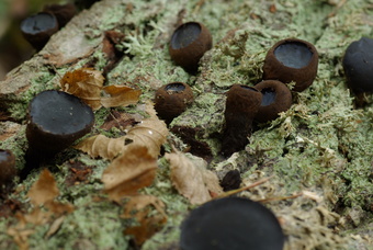 Das Bild gehört zur Serie "Baumpilze". Es zeigt Pilze der Art Gemeiner Schmutzbecherling (Bulgaria inquinans). Der Gemeine Schmutzbecherling ist ein Rindenbewohner, der vor allem auf relativ frischen, liegenden Stämmen und Ästen von Eichen, seltener Esskastanie, Hainbuche und Ulme wächst. Das Bild ist unter CC0 lizenziert und kann somit frei verwendet werden.