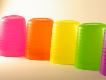 Becher aus farbigem Kunststoff