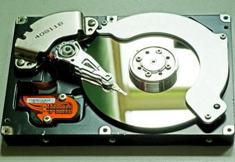 Das Bild gehört zur Serie "Computertechnik". Es zeigt eine Computerfestplatte (HDD: Hard Disk Drive). Ein beweglicher Schreib-Lese-Kopf dient zum Beschreiben, Lesen und/oder Löschen des Datenträgers. Das Bild ist unter CC0 lizenziert und kann somit frei verwendet werden.