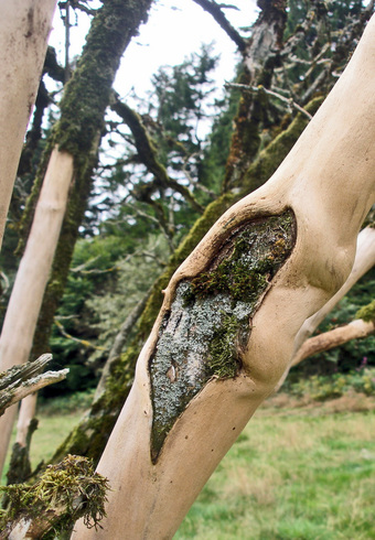 Holunderstamm, teilweise ohne Rinde