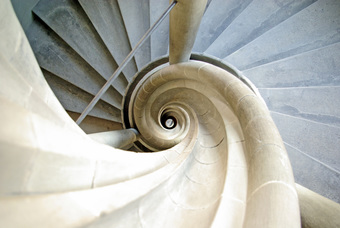 Das Foto zeigt einen Blick auf die Wendeltreppe im Renaissanceteil des Rathauses von Rothenburg ob der Tauber. Das Bild ist unter CC0 lizenziert und kann somit frei verwendet werden.