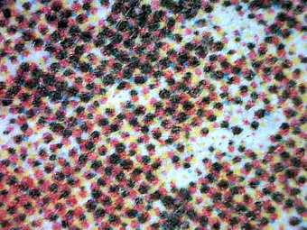 Das Bild gehört zur Serie "Computertechnik". Es zeigt das stark vergrößerte Druckbild eines Tintenstrahldruckers (Matrixdrucker) auf Papier. Man erkennt die Zusammensetzung eines Zeichens/ einer Grafik aus verschiedenfarbigen Tintentropfen. Das Bild ist unter CC0 lizenziert und kann somit frei verwendet werden.