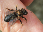 Gehörnte Mauerbiene auf einer Apfelblüte