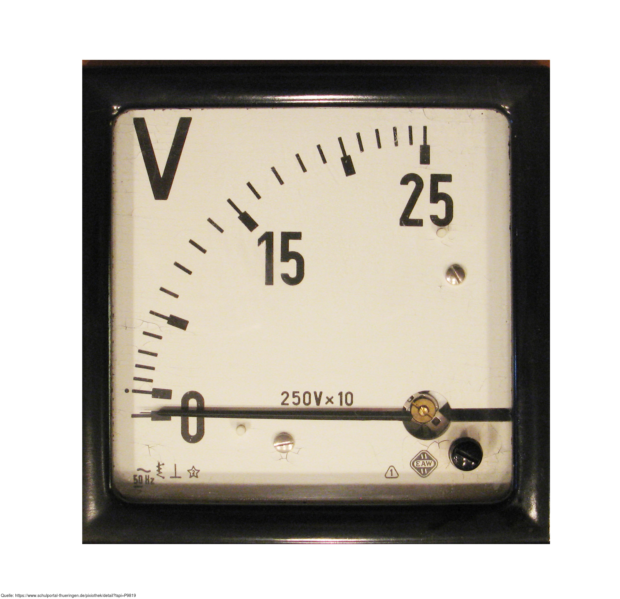 Das Foto gehört zur Serie "Elektrik". Es zeigt ein analoges Spannungsmessgerät (auch als Spannungsmesser oder umgangssprachlich als Voltmeter bezeichnet). Das Bild ist unter CC0 lizenziert und kann somit frei verwendet werden.