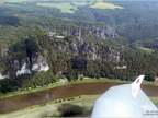 Abgebildet ist ein Motiv aus dem Elbsandsteingebirge. Das Gebirge erstreckt sich vom Oberlauf der Elbe in Sachsen (Deutschland) bis nach Nordböhmen (Tschechien).
