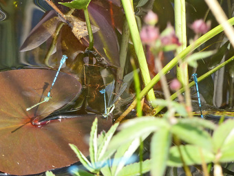 Das Foto gehört zur Serie Libellen. Es zeigt Hufeisen-Azurjungfern (Coenagrion puella), eine Libellenart aus der Familie der Schlanklibellen. Die Hufeisen-Azurjungfer erreicht Körperlängen von 35 bis 40 Millimetern und ist in der Regel sehr schlank, fast nadelförmig gebaut. Es gelten die Nutzungsbedingungen der Mediothek und Pixiothek.
