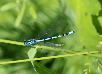 Das Foto gehört zur Serie Libellen. Es zeigt eine Speer-Azurjungfer (Coenagrion hastulatum), eine Kleinlibellenart aus der Familie der Schlanklibellen, die häufigste der blauen Schlanklibellen. Es gelten die Nutzungsbedingungen der Mediothek und Pixiothek.