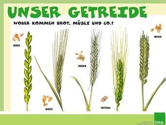 Schlagworte: i.m.a. e.V., Getreidearten, Getreide, Weizen, Gerste, Hafer, Roggen, Dinkel, Triticale, Mais, Anbau, Ernte, Brot, Mehl, i.m.a e.V., Landwirtschaft