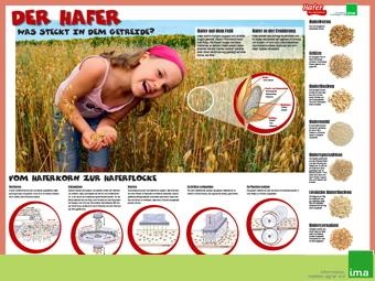 Kurzinhalt: Abgebildet sind die wichtigsten heimischen Getreidearten - Weizen, Gerste, Hafer, Roggen, Dinkel, Triticale und Mais. Sie werden mit ihren pflanzlichen Bestandteilen Ähre, Blatt, Halm und Wurzel dargestellt. Die acht Kopiervorlagen auf der Rückseite liefern Hintergrundinformation zu Herkunft, Anbau und Nutzung sowie passende Arbeitsblätter. Es hat das Format DIN A1, maximal 2 Exemplare pro Klasse können zudem kostenlos im Onlineshop des i.m.a. e.V. (siehe externe Links) bestellt werden.